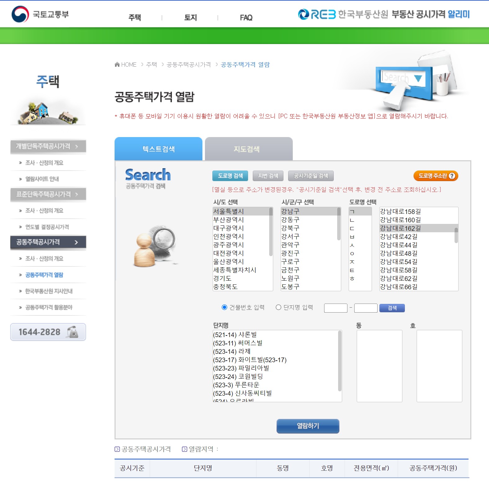 2.주택 카테고리의 공동주택가격열람을 클릭합니다
