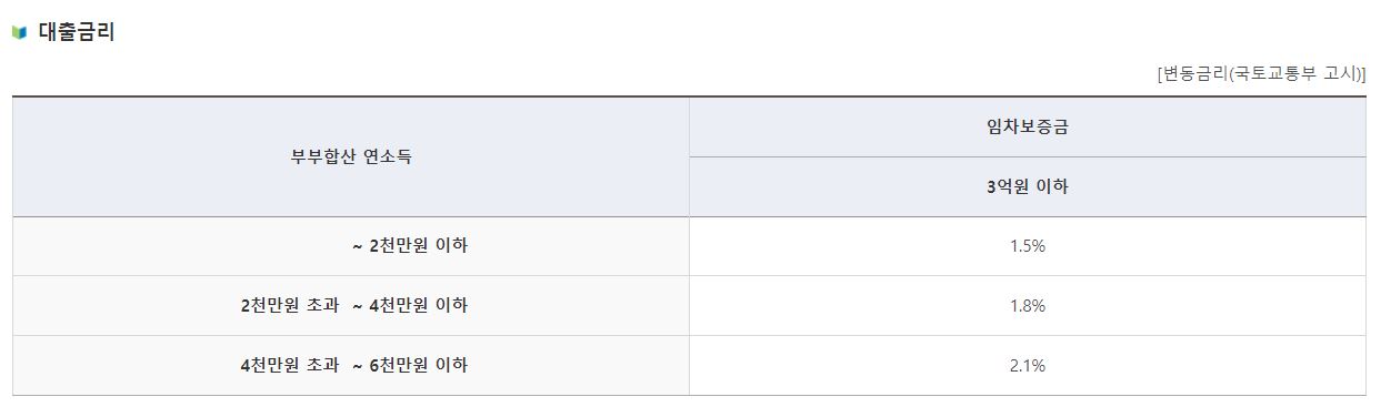 버팀목 청년 전세자금대출 금리안내